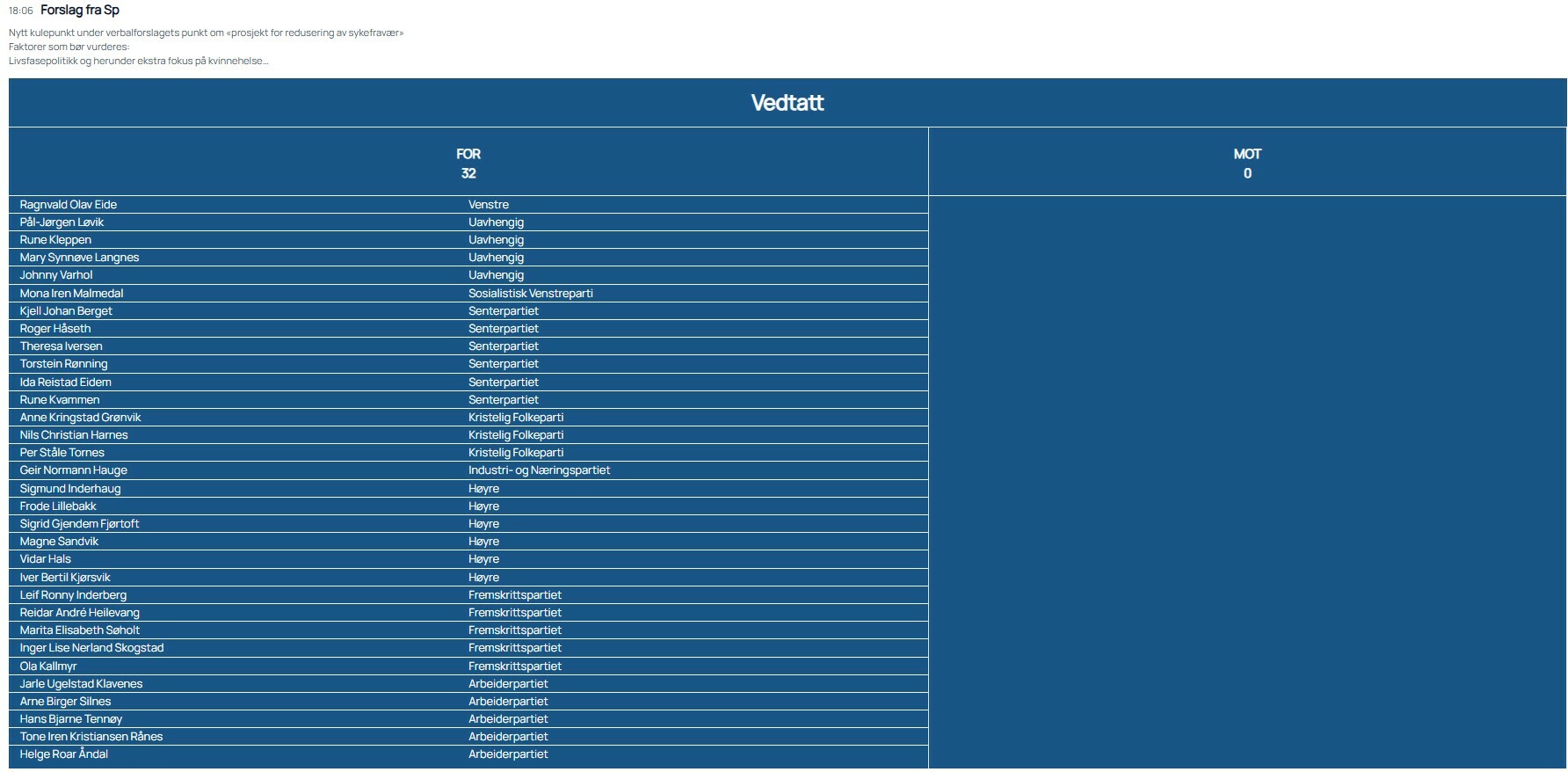 15. Kommunestyret ber om et prosjekt for reduksjon av sykefravær: