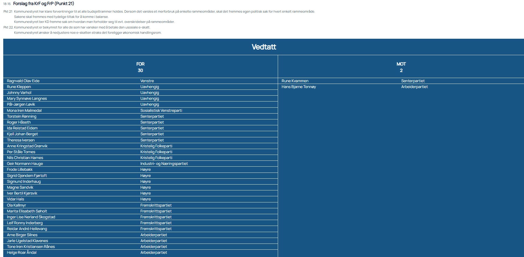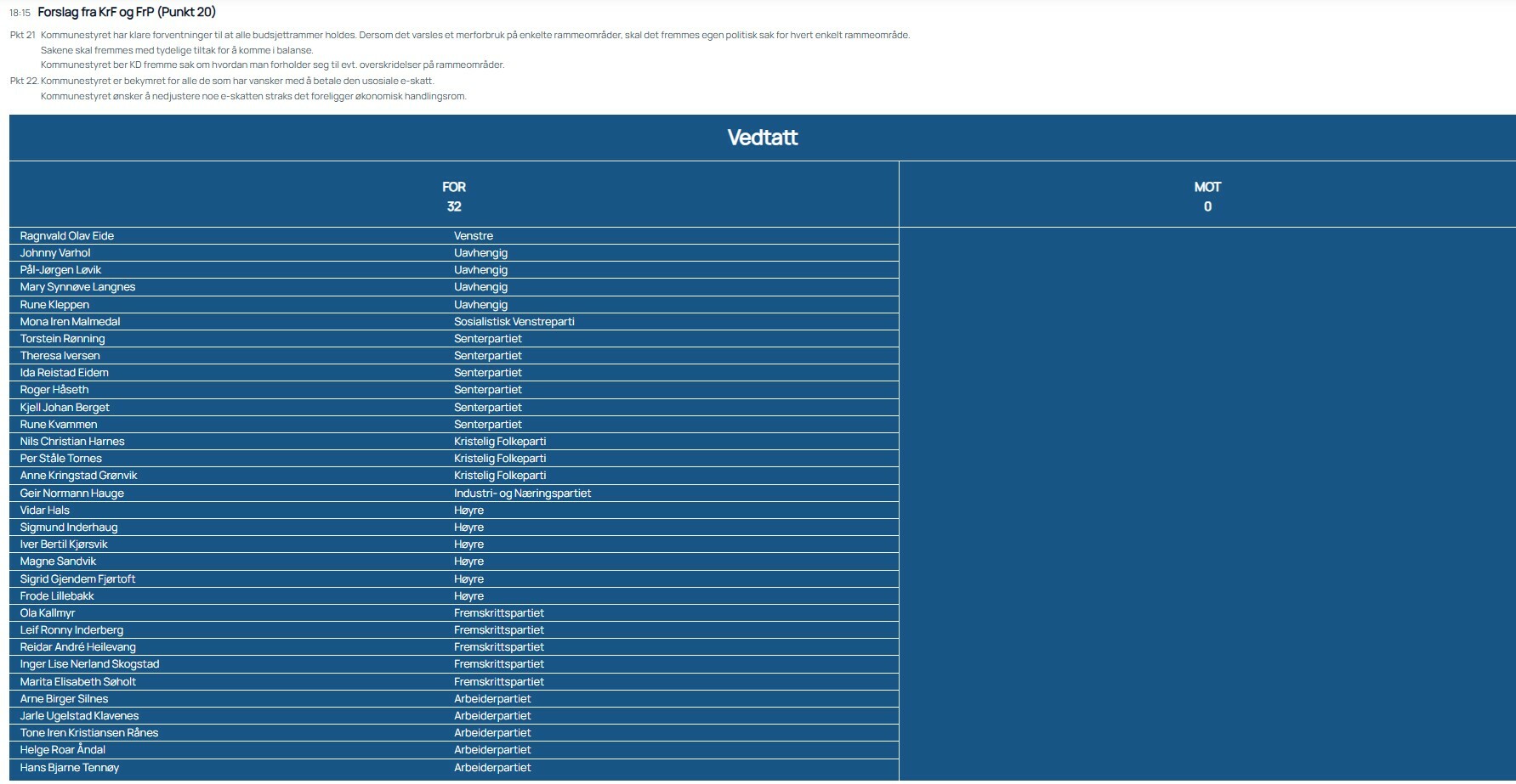 21.Kommunestyret er bekymret for alle de som har vansker med å betale den usosiale e-skatt.